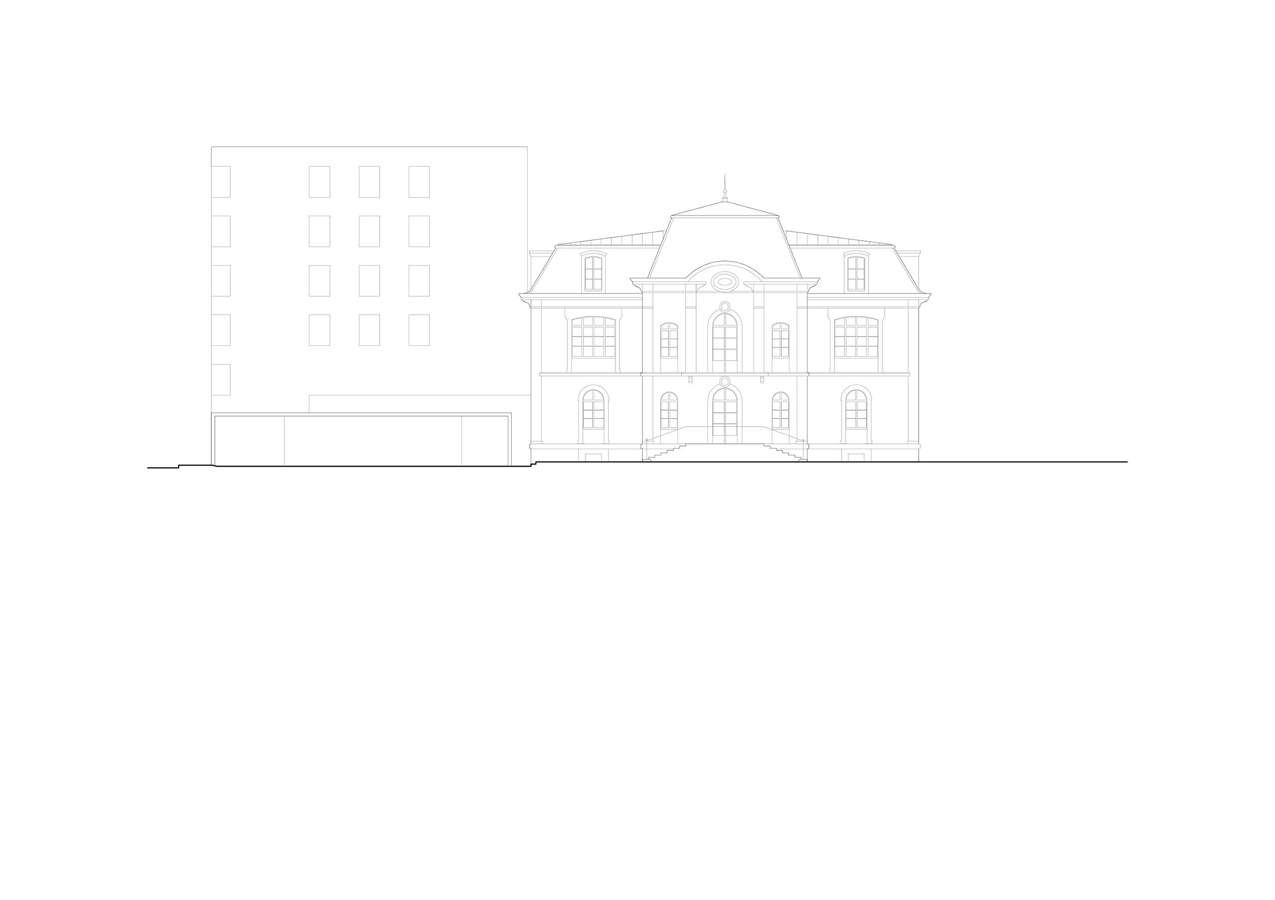 Un salon bibliothèque a été aménagé dans les combles tandis que le sous-sol accueille un espace collectif, une cuisine commune et une buanderie mis à disposition de la clientèle. L’intérieur de la villa a été clarifié et les qualités spatiales remisent en valeur par une expression architecturale simplifiée. L’accent a été mis sur la qualité des parquets existants, les menuiseries anciennes et contemporaines. A l’extérieur, la tonalité de la façade met en évidence les encadrements de fenêtre en pierre et les appareillages de brique.