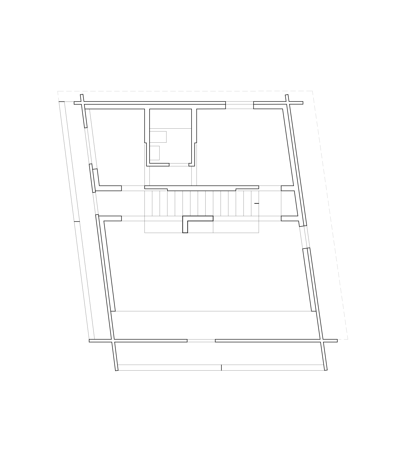 L’ensemble des éléments accompagnant la nouvelle affectation s’insère donc dans l’enveloppe de madriers des niveaux supérieurs. Seules quelques fentes créées par la soustraction de certains d'entre eux introduisent une lumière contrôlée dans les pièces. La toiture d’ardoise reste froide et garanti la circulation de l’air sous la toiture. L’usage initial d’abri est préservé, l’enveloppe dans son intégralité étant aussi bien visible de l’intérieur que de l’extérieur.